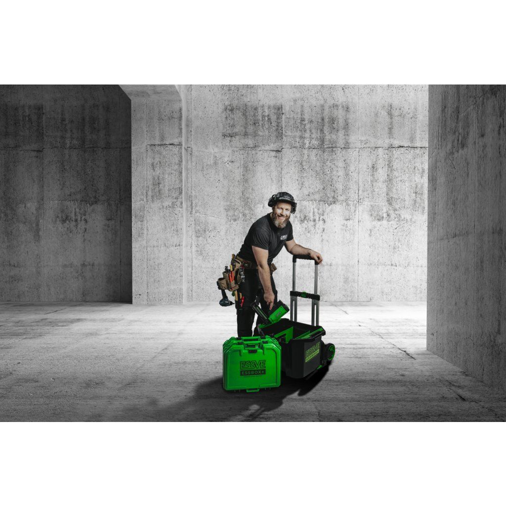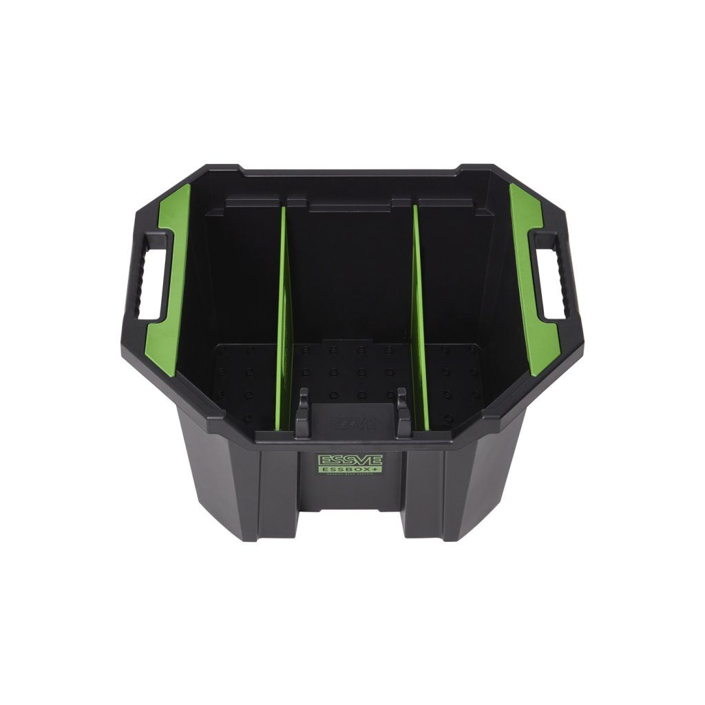 ESSVE Store-It umožňuje inteligentné skladovanie a prepravu produktov, nástrojov a pomôcok potrebných na stavenisku. Store-It obsahuje dve priečky, ktoré je možné umiestniť do prepravky a vytvoriť tak samostatné priestory pre lepšiu organizáciu. Zelený box ESSVE Organize-It slúži ako veko pre Store-It.